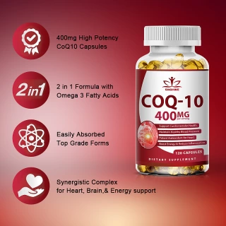 120pcs Organic Q10 Coenzyme 400mg Capsules Cardiovascular and Heart Health Energy Vitamins Beauty and Health